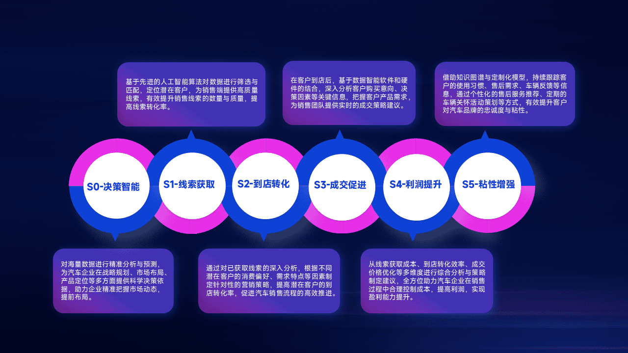 通过拓宽潜在客户来源、、、、优化线索分配并提高到店转化率,,,以增强销售效率。。。同时,,利用线索数据不断优化分析模型,,,,有效提升转化率,,扩大营销影响力。。